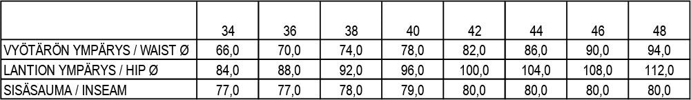 ELVINA-housut on valmistettu sinisestä farkkukankaasta, jossa on hieman elastaania joustoa antamassa. Housut on tuotepesty. Vyötäröllä on kuminauha. Housut ovat kapealinjaiset. Päällitikkaukset on tehty farkkutyyliin keltaisella langalla. ELVINA-housut on suunniteltu Suomessa ja valmistettu Liettuassa.
