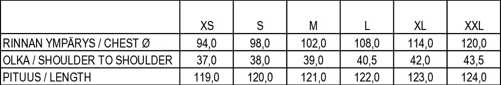 Pitkä hartioista siro hihaton mekko, joka levenee alaspäin.<br>Malli on 177 cm pitkä ja hänellä on päällä S koko, jonka pituus on 120 cm ja rinnanympärys 98 cm.
